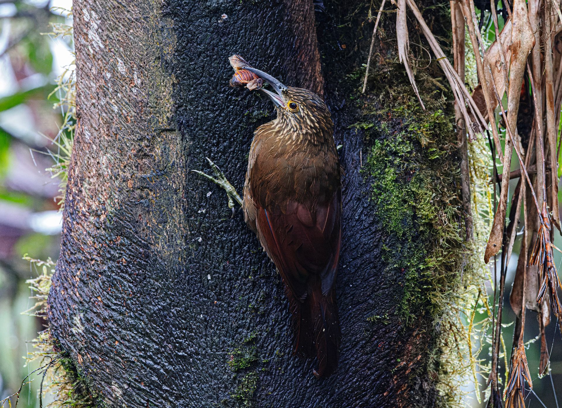 The Plate-billed Mountain Toucans travelled in small noisy groups and the hummingbirds were always busy around the feeders. I saw two elusive Ocellated Tapaculos scoot across a path, a new Golden Quetzal nest (no parents) and heard White-faced Nunbirds.